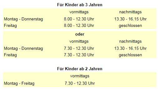 Im Kindergarten Bachstraße gibt es eine Regelgruppe und eine altergemischte Gruppe für Kinder ab 2 Jahren mit folgenden Öffnungszeiten: