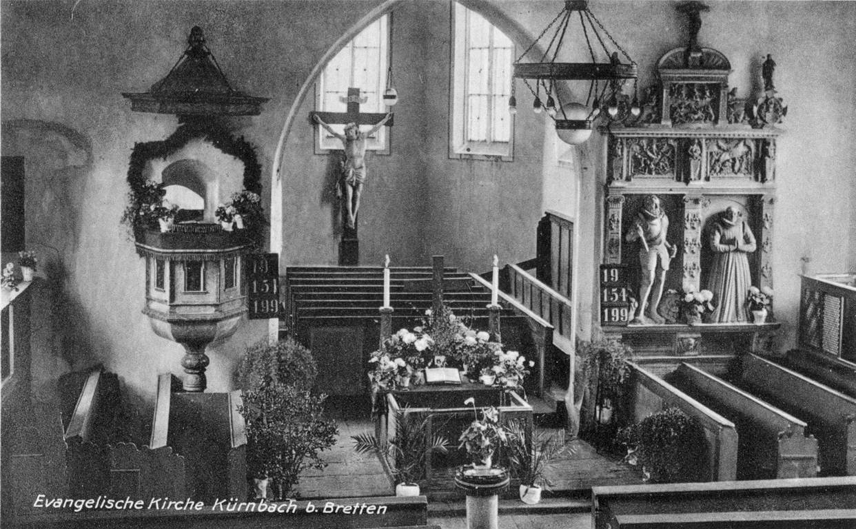 Im dreißigjährigen Krieg wurde die Kürnbacher Kirche 1637 verbrannt und 1658 wieder aufgebaut 1721-26 erfolgte eine gründliche Renovierung der bereits wieder einsturzgefährdeten Kirche. Dabei wurde der Turm im oberen Teil achteckig aufgestockt. Auch in der Folgezeit waren immer wieder schwere Schäden an der Kirche zu beheben.